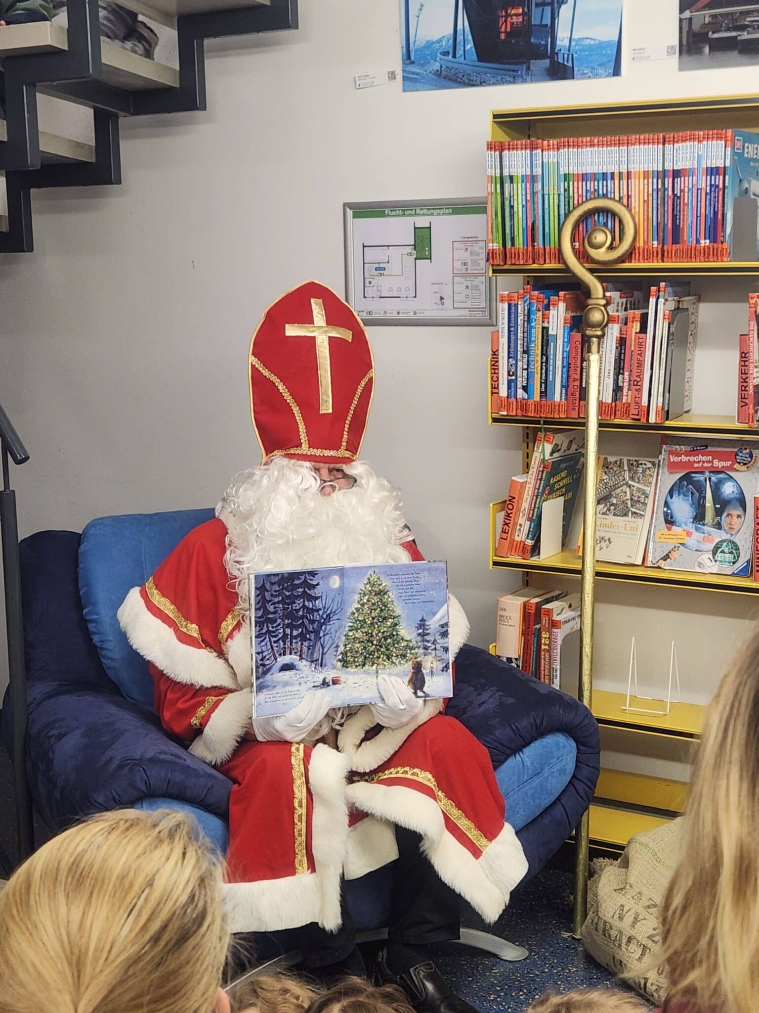 Am 4. Dezember war es endlich soweit: Der Nikolaus besuchte die Gemeindebücherei und zauberte 30 Kindern ein Lächeln ins Gesicht. In einer gemütlichen Ecke las er ihnen mit viel Freude und ganz viel Herz aus eine Weihnachtsgeschichte vor. Die Kinder lauschten gespannt, wie er die Geschichten zum Leben erweckte – und vielleicht konnte der ein oder andere sich auch schon heimlich fragen, wer sich wohl hinter dem weißen Bart verbarg.