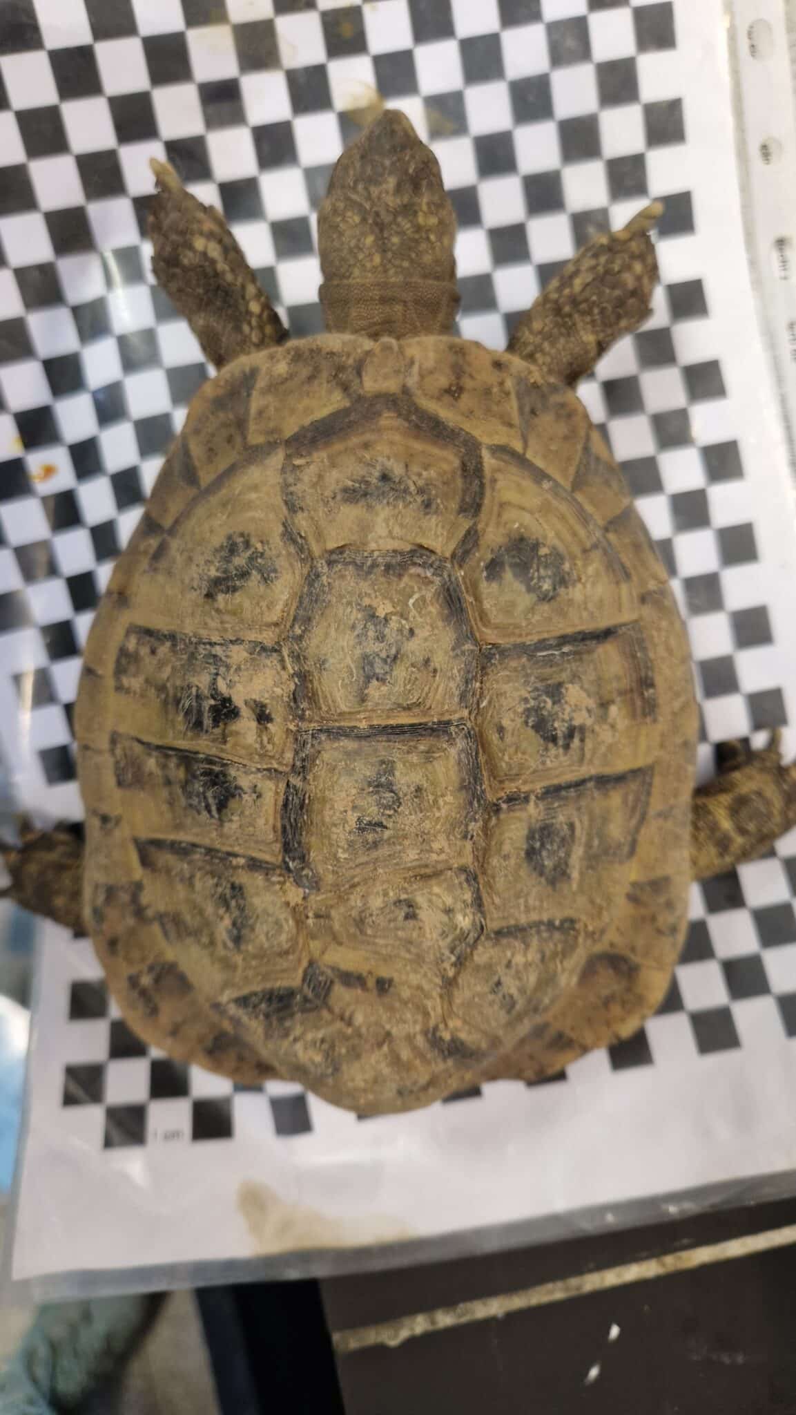 Am 03.10.2025 um 18:00 Uhr wurde im Maisfeld an der M4 beim Pflanzen Ries eine Griechische Landschildkröte gefunden.