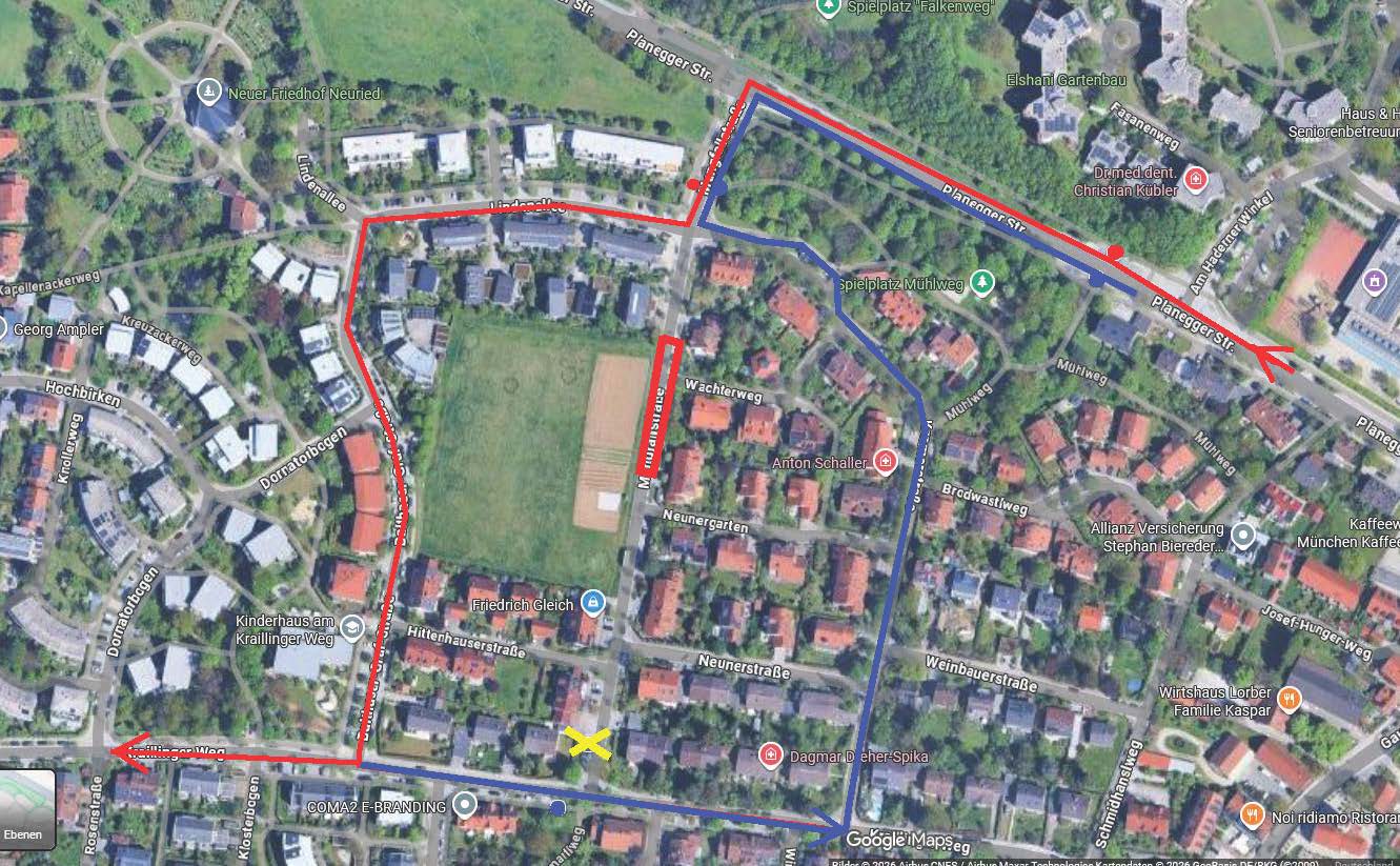 Die Mangfallstraße auf Höhe Wachterweg wird ab Montag, 2. März, wegen Unterspülung des Asphalttragschicht in beide Richtungen gesperrt. Die Zufahrten zur Lindenallee und Kramerstraße bleiben bestehen. Eine Umleitung wird eingerichtet, der Busverkehr wird ebenfalls umgeleitet. Die Linie 261 in Richtung Hainbuchenring hält am Friedhof Lindenallee, der Halt Kraillinger Weg entfällt.