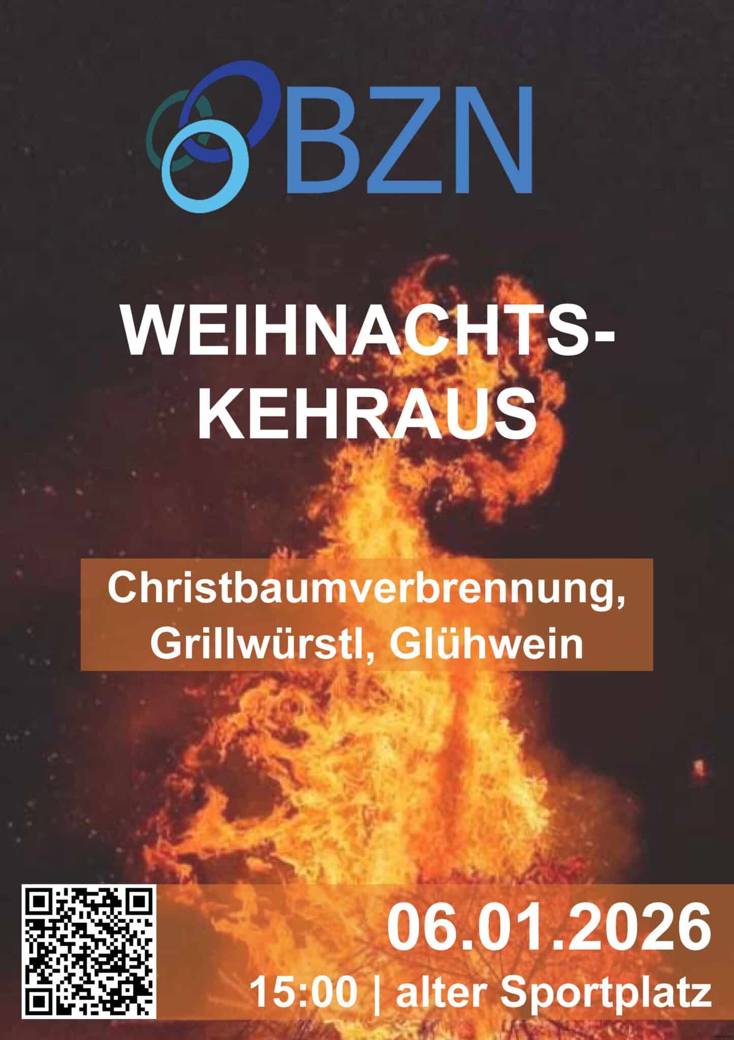 Auch in diesem Jahr läd das Bündnis Zukunft Neuried e.V. zum traditionellen Weihnachtskehraus am Dreikönigstag ein. Von 15 - 20 Uhr begrüßen wir zusammen mit Ihnen und einem großen Spektakel das neue Jahr. Bringen Sie Ihre vollständig abgeschmückten Christbäume zum alten Sportplatz in Neuried, wo Sie Zeuge werden können, wie dieser in einem beeindruckenden Feuer niederbrennen.